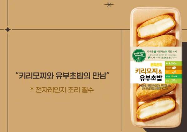 편의점 CU에서 만날 수 있는 ‘쫀득키리모찌유부초밥’은 특이한 콘셉트로 만들어진 유부초밥 제품이다. 언제 먹어도 안정적인 맛을 제공하는 유부초밥에 쫀득한 키리모찌를 넣었다. 키리모찌는 네모난 모양의 일본식 건조 찹쌀떡으로, 주로 만화나 애니메이션에서 볼 수 있는 길게 늘어나는 일본 전통 떡이다. 단짠맛을 음미할 수 있는 제품으로, 전자레인지 조리가 권고되는 메뉴다. 본 메뉴의 판매가는 4,000원이다.