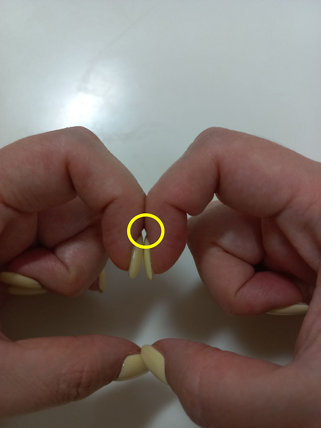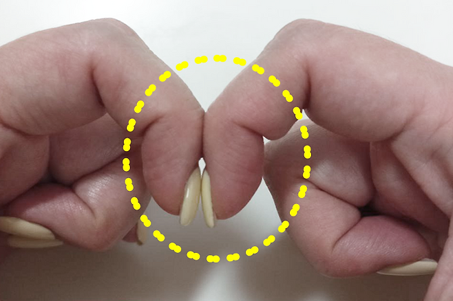 핑거 클러빙은 검지 손톱을 맞대고 눌러보면 확인할 수 있다. 양손의 검지 손톱을 맞대보면, 건강한 사람은 손톱 사이에 '다이아몬드'형태가 보인다.