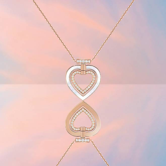 먼저, 프리티 우먼 힙노틱 네크리스는 뒤집어 연출할 수 있는 2개의 하트로 구성한 펜던트에 핑크 골드 소재와 다이아몬드가 파베 세팅된 탈착형 골드 클래스프로 연결되어 있다. 머더 오브 펄 소재의 하트와 다이아몬드가 파베 세팅된 또 다른 하트는 원하는 무드와 스타일에 따라 커스터마이징이 가능하고, 네크리스를 각기 다르게 조합해 4가지 색다른 맛을 즐길 수 있다. 프리티 우먼 힙노틱 링 또한 더블 하트 모티프를 주축으로, 한쪽 면은 핑크 골드와 머더 오브 펄을, 반대쪽 면은 핑크 골드 소재에 다이아몬드를 파베 세팅해 매력적인 듀오 디자인으로 제시한다.