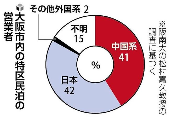 정착지는 주로 도쿄, 오사카인데 그중에서도 특히 오사카에 중국인 인구가 집중되고 있습니다. 이는 토지가격이 상대적으로 저렴하고 민박업 운영이 간단하면서도 수익성이 높기 때문입니다. 실제로 오사카 민박 운영자 비율을 보면 일본인이 42%, 중국계가 41%로 집계되며, 단기간에 중국계 비중이 일본인과 맞먹는 수준으로 성장했습니다. 이외에도 곳곳에서 민박업을 중심으로 한 중국인의 영향력이 빠르게 확산되고 있는 상황입니다.
