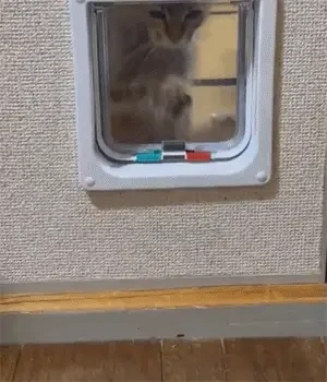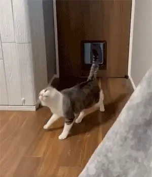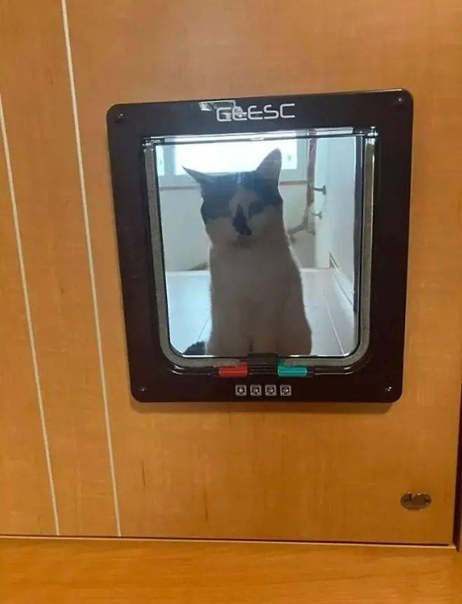 고양이들이 살짝 밀기만 하면 지나갈 수 있게 디자인되었지만, 많은 집사들은 자신의 총명한 고양이가 정작 이 고양이 문을 사용하지 못하고 문 앞에서 멍하니 앉아 있는 황당한 상황을 종종 목격합니다.
