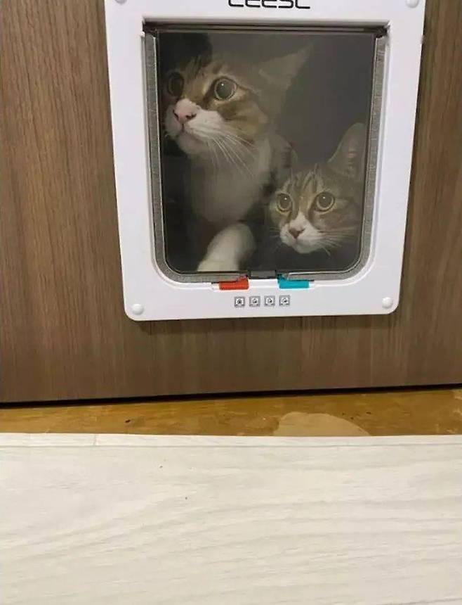 어떤 고양이는 문을 뚫고 지나갔지만, 다른 고양이는 문 뒤에서 어찌할 바를 모르는 모습이 대조적으로 비춰지기도 했습니다.