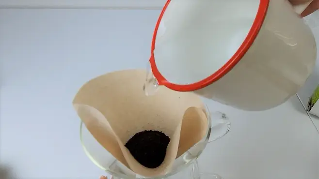 고춧가루와 커피필터만 있다면 고추기름 따로 구매할 필요가 없어요! 우선 커피 필터를 유리 병에 꽂아주세요. 저는 커피를 내릴 때 쓰던 걸 사용했는데 정말 편리하더라구요~~