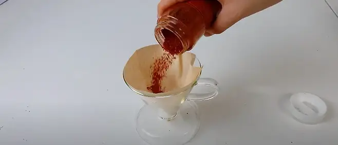 고춧가루와 커피필터만 있다면 고추기름 따로 구매할 필요가 없어요! 우선 커피 필터를 유리 병에 꽂아주세요. 저는 커피를 내릴 때 쓰던 걸 사용했는데 정말 편리하더라구요~~