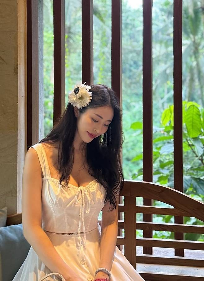 공개한 사진에서 서동주는 열대 정글을 배경으로 순백의 화이트 슬리브리스 드레스를 입고 로맨틱한 분위기를 물씬 자아냈다.