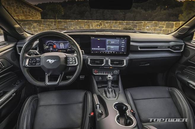 7세대 머스탱의 실내는 전투기에서 영감을 받은 디자인으로 설계되었습니다. 12.4인치 운전석 디스플레이와 13.2인치 센터 디스플레이의 곡면형 구조는 미래지향적인 느낌을 주면서도 직관적인 조작이 가능합니다.