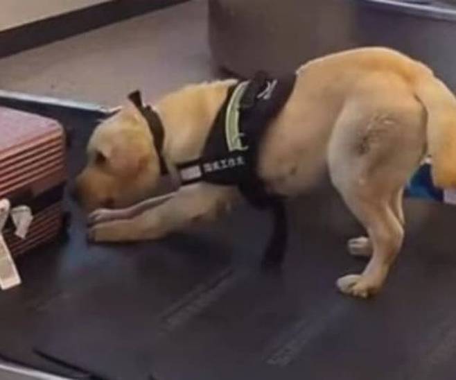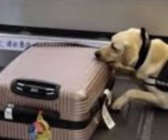 이날 탐지견은 한 승객의 수하물 앞에서 멈춰섰습니다. 탐지견은 수하물에서 무언가 냄새를 감지라도 한 듯 멈춰선 것인데요.