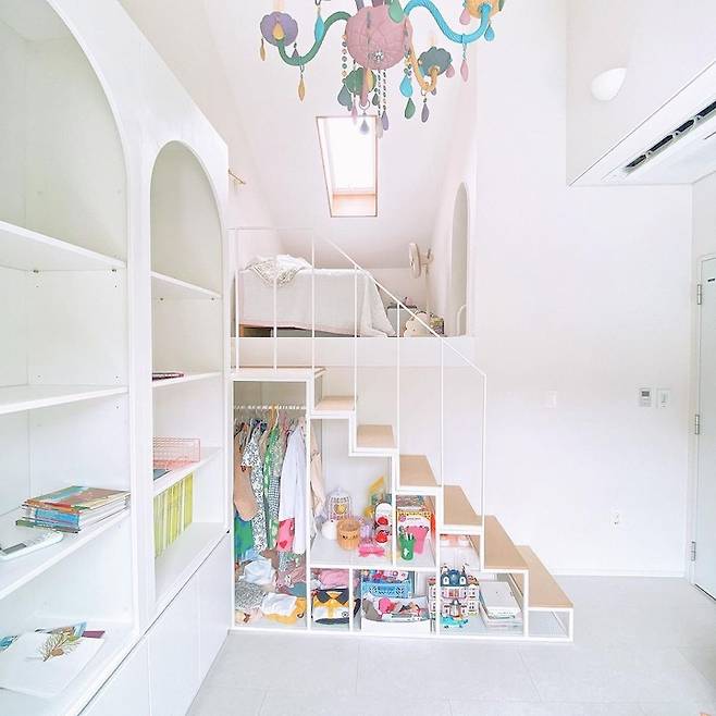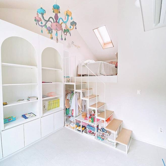 특히 저희 집은 첫째와 둘째 아이가 각자 책을 볼 수 있는 분리된 공간이 필요하다고 생각했어요. 동생과 나이 차이가 많이 나는 첫째 아이가 다락방 같은 자신만의 공간을 원하기도 했고요.