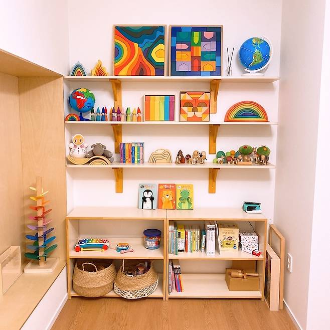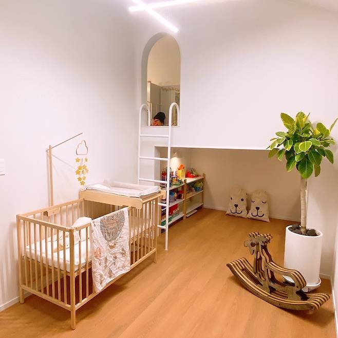 이 방은 첫째 아이의 방과 다르게 내추럴한 우드의 감성이 가득해요. 조금 더 따뜻한 느낌으로 꾸며주려고 노력을 많이 한 공간이에요.
