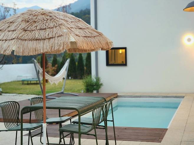 정원은 포인트가 되는 공간이 너무 많아요. 우선 수영장은 정말 우여곡절 끝에 큰 결심으로 만들게 되었는데요.