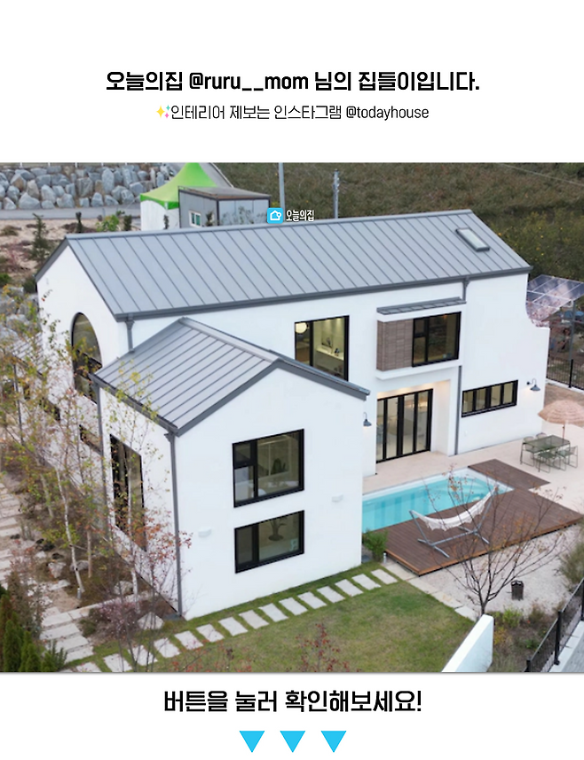 이룸하우스는 저희 부부의 요구 사항이 정말 많이 반영된 집이에요. 도서관 부럽지 않은 독서 공간, 수영장과 연결된 주방, 넓고 큰 계단실과 책장, 서로 연결되도록 만든 아이 방, 로망이었던 큰 아치창을 품은 안방. 여러 사항들을 반영하여 무려 열 번의 수정 작업 끝에 나온 도면이랍니다. 둘째 출산을 불과 3주 앞두고 입주하게 되어 아직 정리 중이지만 용기 내어 저희 집을 소개해 볼게요!