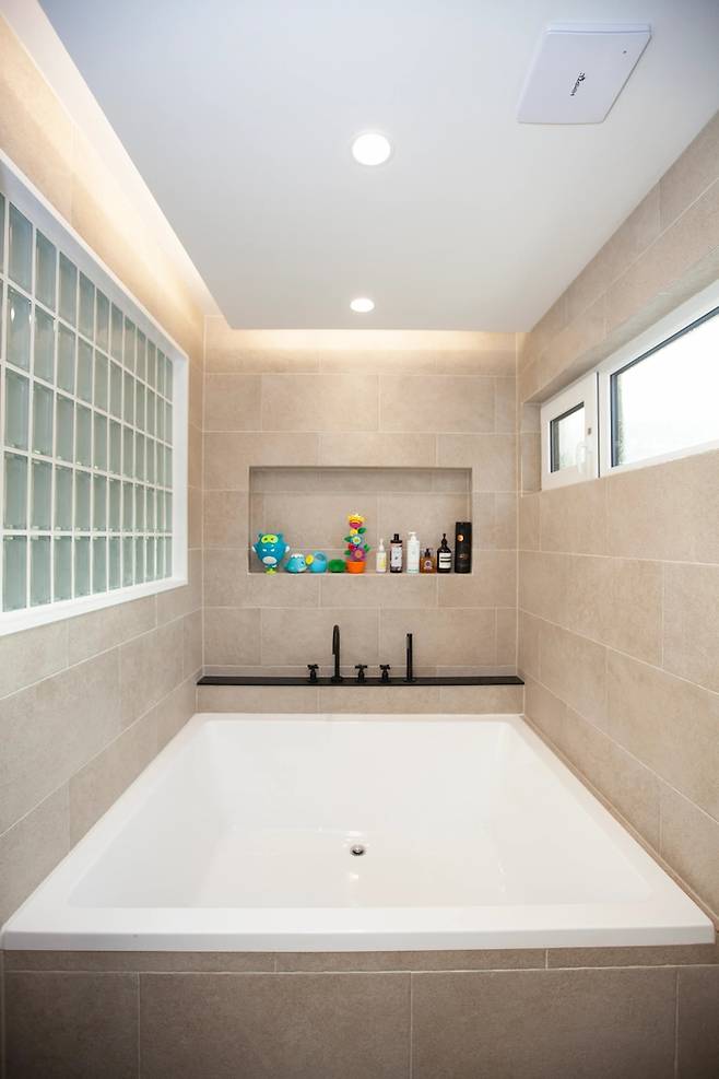 화장실 한 쪽 벽면은 유리블록으로 시공했어요. 2층 복도에서 봤을 때 답답해 보이지 않고, 욕실 안에서 보는 아름다움도 극대화해주더라고요.