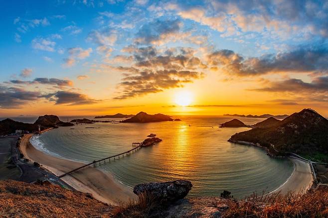 또한, 선유도의 지형이 큐피드의 활처럼 휘어져 있는데, 서해 일출과 맞 닿으면 더욱 낭만적으로 보입니다. 어둠 속에서 붉은빛이 바다 위를 물들이며 떠오를 때, 주변의 작은 섬들과 해변이 환하게 빛나기 시작하는 선유도에서 새해 일출을 감상해 보세요.