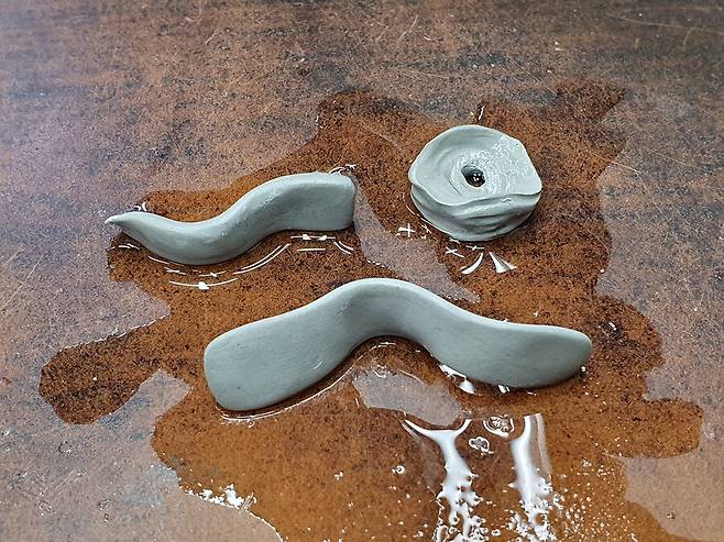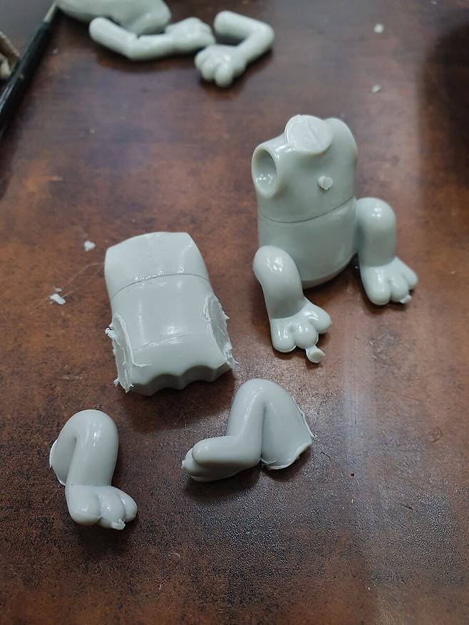작업복 모양을 다 갈아내고 퍼티를 발라서 스웨터 모양을 잡아줍니다.