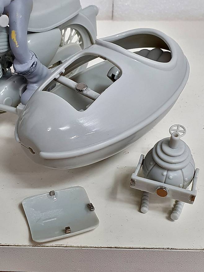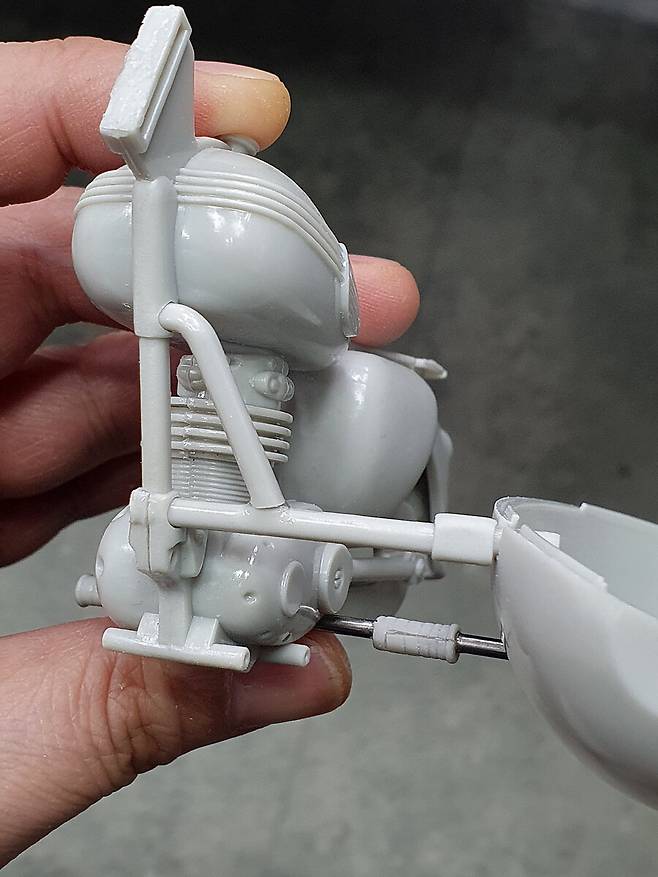 우선 바이크와 사이드카를 연결하는 부분이 사진과 프라모델이 많이 달라서