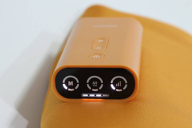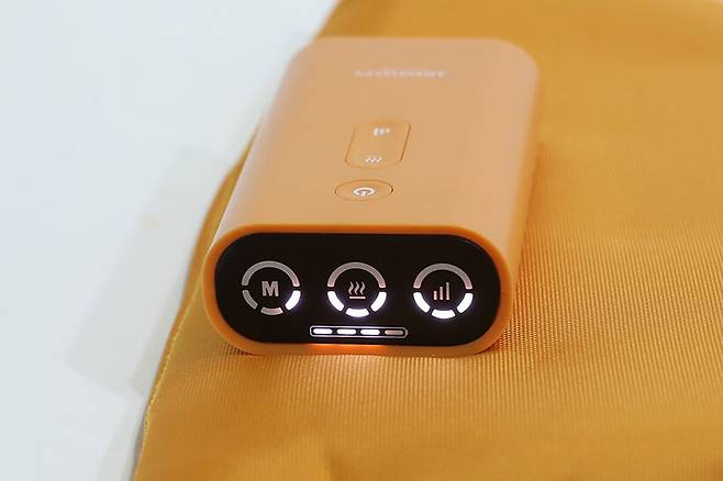온열 버튼을 누르면 온열 기능도 3단계로 작동시킬 수 있으며, 강도 조절 버튼을 누르면 강도 역시 3단계로 조절할 수 있다.