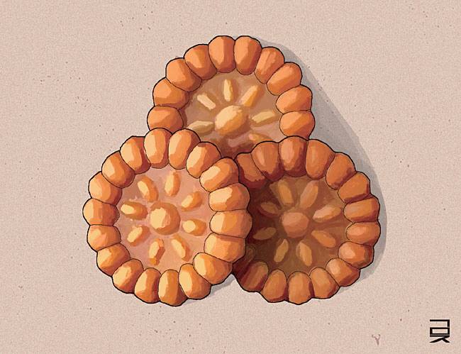여기에 흔히 약과라고 부르는 ‘과줄’까지 끼어들면 상황은 더 복잡해진다. 과줄은 17, 18세기 문헌에는 ‘과즐’로 표기되었다. 그런데 ‘과즐’의 ‘즐’은 우리말에 흔한 소리는 아니어서 어색함이 느껴진다. 그래서인지 ‘과즐’은 19세기 문헌부터 ‘과줄’로 나타나기 시작한다. 그래도 ‘과즐’이든 ‘과줄’이든 도대체 어디서 유래한 것일까, ‘과자(菓子)’와는 어떤 관계가 있는 것일까 하는 궁금증은 여전하다.