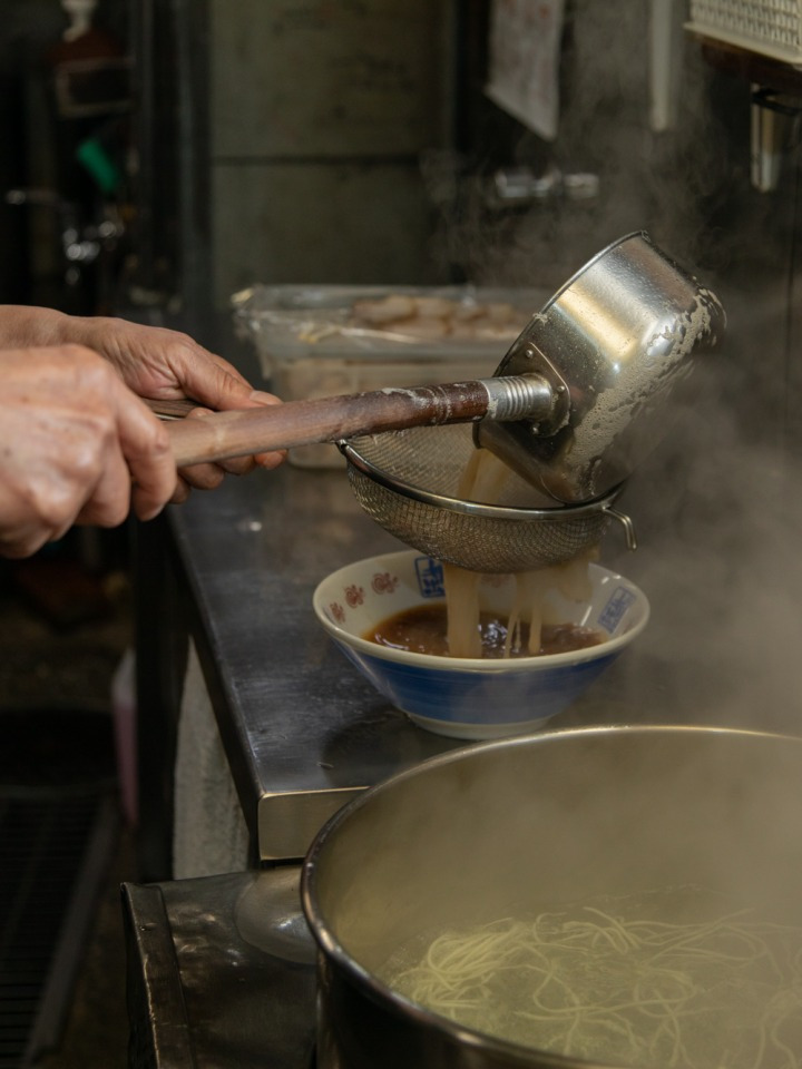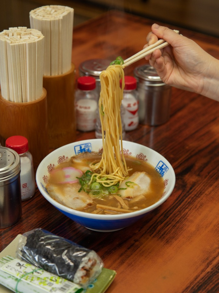 와카야마시에 왔다면, 와카야마 라멘을 꼭 맛봐야 한다. 츄카소바(中華そば)라고도 불리는 이 라멘은 돼지고기 육수와 와카야마산 간장이 진하게 어우러지는 국물이 특징이다. 고명으로 올리는 차슈(돼지고기)에도 지방과 속살이 적절히 붙어 있어야 한다. 겉에 살짝 바른 양념에서 느껴지는 감칠맛이 화룡점정. 국물을 충분히 머금는 면의 두께도 중요하다. 라멘 가게마다 각기 다른 특징이 있어, 취향에 맞는 라멘을 찾아보는 것도 하나의 재미다. 한 가지 공통점도 있다. 어딜 가나 테이블에 고등어 절임 초밥이 놓여져 있다는 것. 라멘이 나오기 전에 초밥으로 속을 달래라는 의미다. 와카야마 라멘은 이데쇼텐(井出商店) 덕분에 더 유명해졌다고 해도 과언이 아니다. 1998년 일본 예능 프로그램 〈TV 참피온〉에서는 일본 전 지역에 있는 라멘 장인을 섭외해 요리 경연을 벌였는데, 이때 이데쇼텐의 와카야마 라멘이 2년 연속 (1998년, 1999년) 1위를 차지한 것. 우승을 한 지 20여 년이 훌쩍 지났지만, 이데쇼텐은 여전히 문전성시를 이루며 그 맛을 지키고 있다. 기다리는 손님을 위해 주차장을 확장했을 뿐, 좌석은 단 14석. 40년 전 처음 가게를 오픈했을 때와 똑같다. 부엌에는 ‘수프맨(Soupman)’ 티셔츠를 입은 직원들이 분주하게 움직이고 있다.