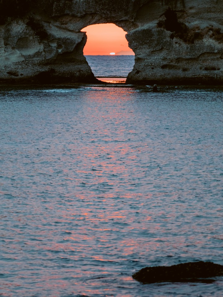 시라하마는 바닷가 온천과 해안 풍경 그리고 일몰로 유명한 도시다. 와카야마역에서 시라하마까지는 JR구로시오 특급 열차를 타고 1시간 30분이 걸린다. 유명한 시라하마의 일몰을 보려면, 바위섬 엔게츠도(円月島)로 향할 것. 바위 중간에 해식 동굴이 동그랗게 뚫려 있어 ‘엔게츠(円月, 보름달)’라 불리는데, 동굴 사이로 해가 떨어지는 절경을 포착하기 위해 많은 사람이 모여드는 곳이다. 시라하마를 둘러싼 바다의 거센 파도는 바위섬을 비롯해 1,000장의 다다미가 깔려있는 것 같아 센조지키(千畳敷)라 불리는 암반과 썰물이 절벽에 부딪혀 형성된 주상절리 암벽 산단베키(三段壁)를 만들었다.