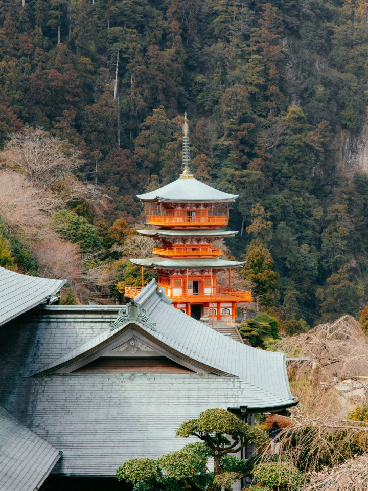 풍부한 자연 유산을 품고 있는 구마노. 예로부터 일본인은 이곳을 자연과 인간의 정신세계가 교차하는 곳으로 여겨왔다. 구마노의 성지 중 구마노 혼구타이샤(熊野本宮大社), 구마노 하야타마타이샤(熊野速玉大社), 구마노 나치타이샤(熊野那智大社) 3곳을 '구마노산잔(熊野三山)'이라고 한다. 와카야마역에서 각 성지까지 기차와 버스로 연결된다.