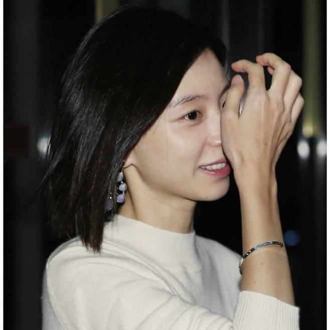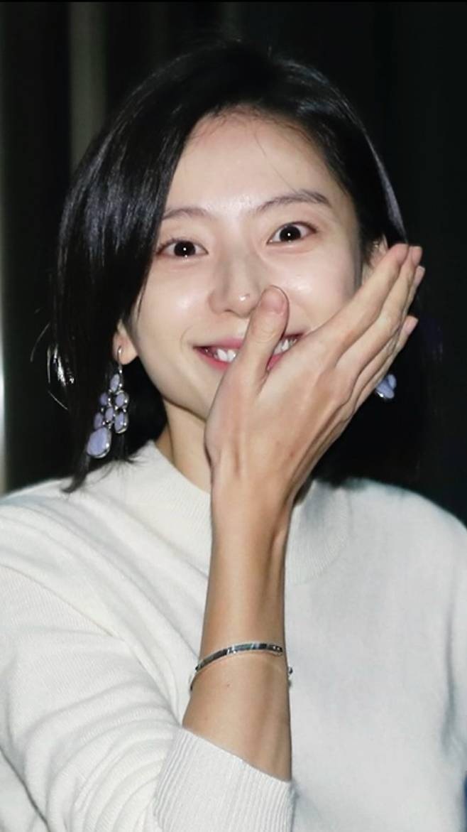 이날 박수진은 아이보리 니트 톱에