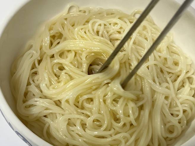 만일 삶은 국수가 남았다면 버리지 마시고 냉장고에 보관하세요! 하루 정도는 괜찮습니다. 이때 참기름이나 들기름 살짝 둘러서 코팅한 다음 냉장보관 하세요.