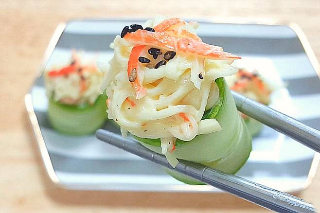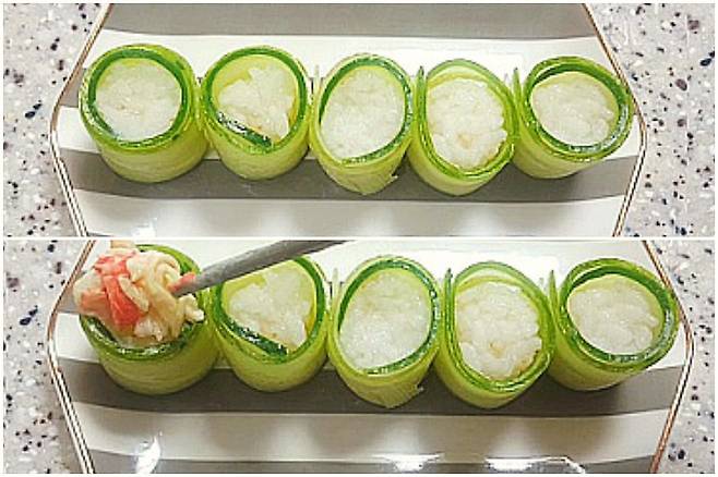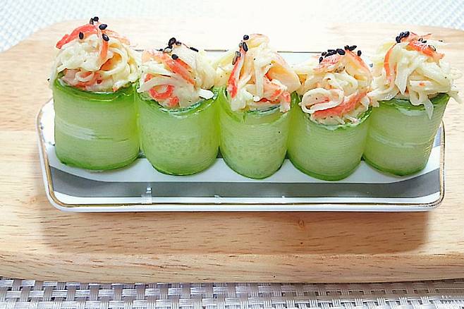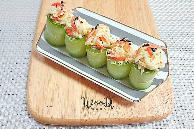 날씨가 더워지면서 상큼하고 시원한 느낌 나는 음식이 먹고 싶어 지는데요. 이럴 때 먹으면 너무 맛있는 크래미 오이초밥 소개합니다