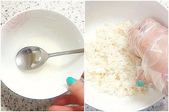 설탕, 식초, 물, 소금을 넣고 단촛물을 만들어 밥에 골고루 섞어 줍니다.