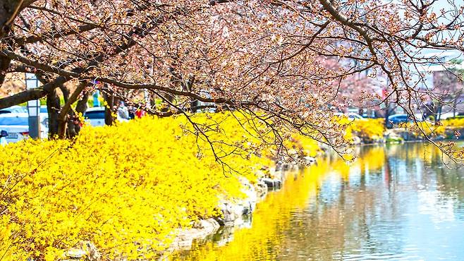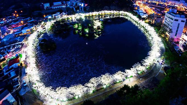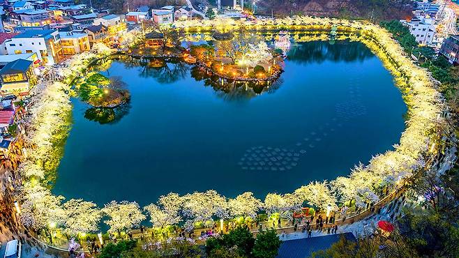 특히 밤이 되면 분위기는 완전히 달라진다. 조명이 켜진 뒤 잔잔한 수면 위로 벚꽃과 정자가 동시에 반사되며 또 다른 풍경이 펼쳐진다. 낮의 화사한 봄 풍경과는 다른 고즈넉한 정취가 형성되면서 야경을 보기 위해 찾는 방문객도 늘고 있다.