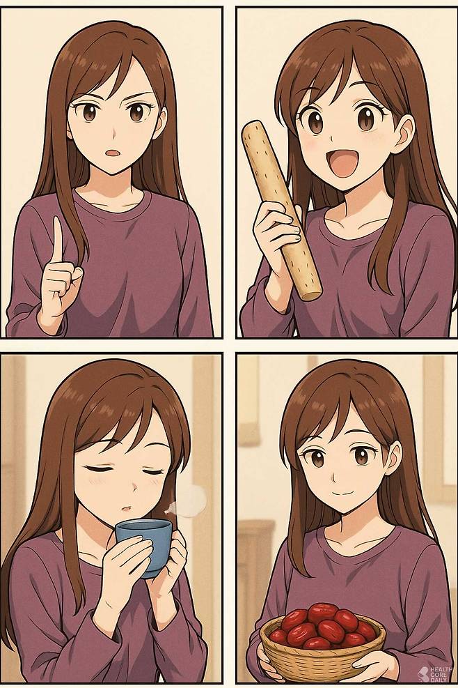 겉은 단단하지만 안은 말랑하고 단맛이 풍부한 대추는 마음을 진정시키는 데 자주 쓰였다. 전통 한약에서도 보조재로 빠지지 않고, 대추차나 대추죽은 예로부터 몸이 허할 때 자주 등장한 음식이다. 허준이 대추를 통해 속을 따뜻하게 하고 불안을 가라앉힌다고 전했다는 내용이 영상에서 반복돼 언급된다. 뜨거운 물에 대추를 오래 달이면 속이 편안해지면서도 자연스러운 단맛이 올라와 거부감 없이 즐길 수 있다. 이 단맛은 혈당을 빠르게 올리지 않으면서도 기운을 북돋우는 데에 도움을 준다.