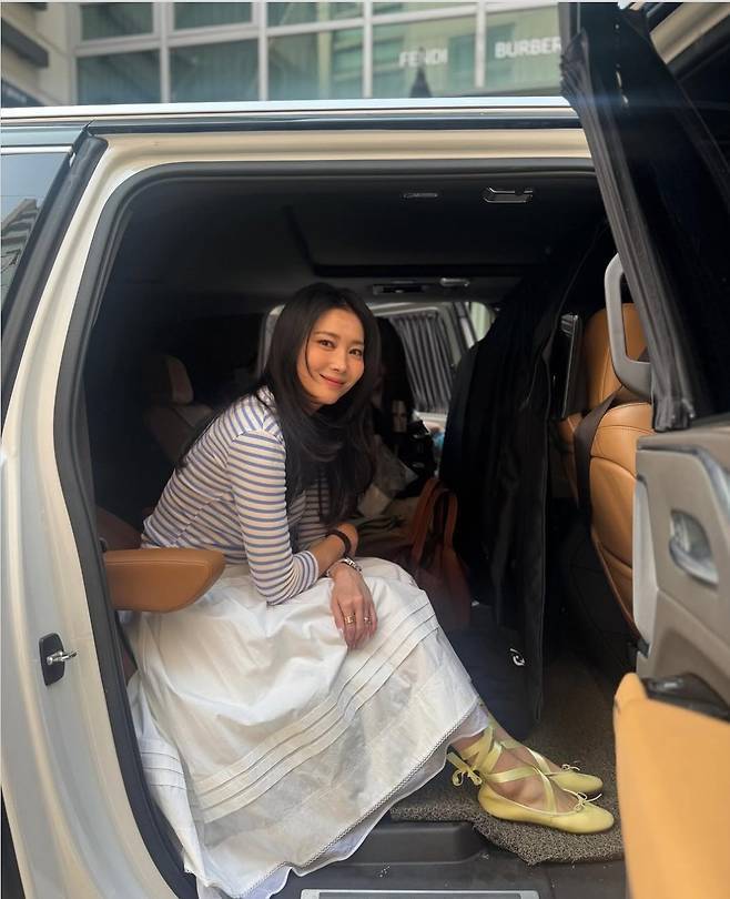 배우 오윤아가 차량 안에서도 눈부신 데일리 스타일링 감각을 뽐냈습니다.