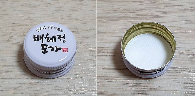 깔끔한 디자인과 종이로 윗부분을 감싼 후 실로 묶어 예스러운 분위기를 살린 차별화된 용기가 인상적이었습니다. 대부분의 막걸리는 플라스틱 뚜껑을 사용하는데 알루미늄 재질을 사용한 점도 특이했습니다. 뚜껑 안쪽은 발효가 계속 일어나는 생탁주 특성상 탄산 배출을 위해 부직포 재질로 되어 있습니다.