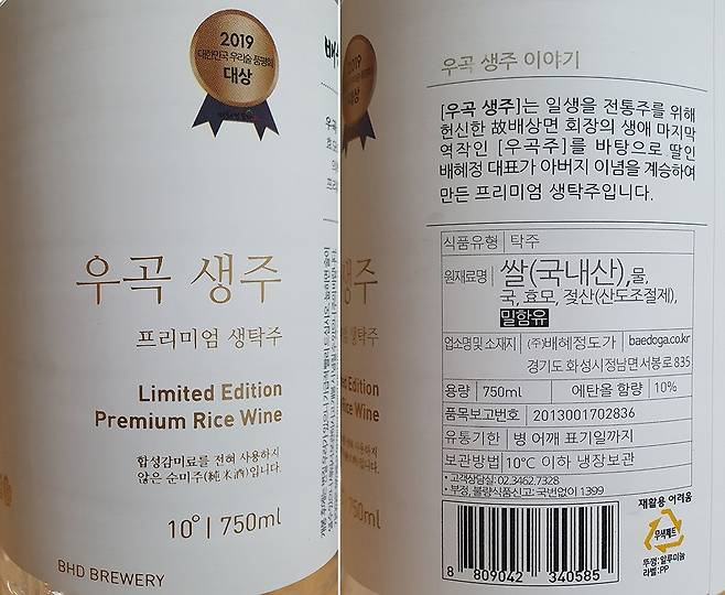라벨 및 원재료 표기를 살펴보겠습니다.
