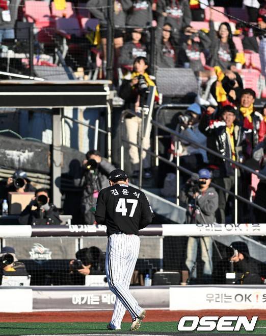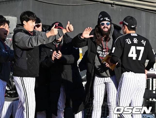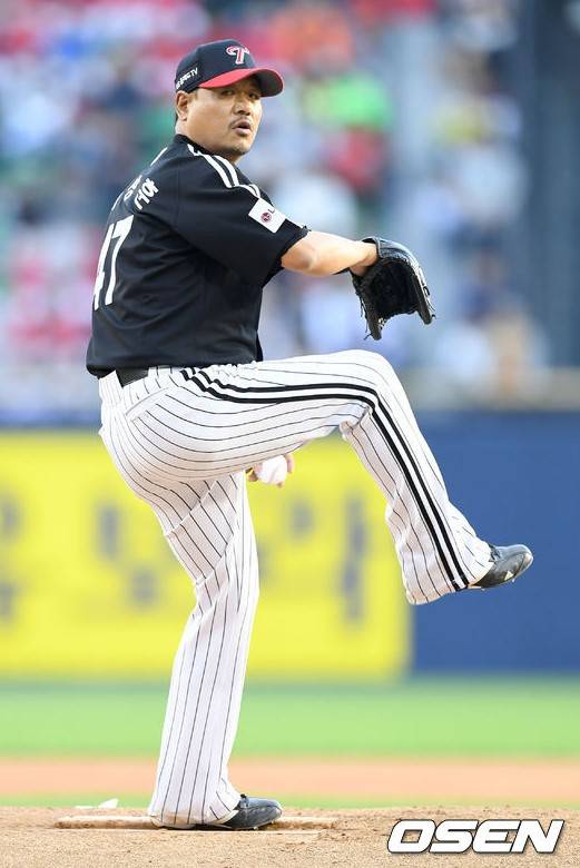 지난 7월의 일이다. 팀이 큰 고민을 안고 있을 때다. 순위는 1등이지만, 늘 선발 때문에 허덕였다. 차명석 단장이 2군 훈련장을 찾았다. 부상으로 재활 중이던 김윤식과 마주쳤다. (농담이지만) 따끔하게 다그쳤다. “너, 뭐라고 그랬어? 잘할 수 있다며? 이럴 거면 47번 도로 내놔. 괜히 이상훈 선배님 이름에 누 끼치지 말고.”