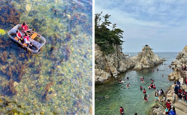 장호항의 어촌체험마을에서는 투명 카누와 바다 래프팅, 스노클링 장비를 모두 대여해 주며, 저렴하게 동해바다의 물놀이를 온전히 모두 느껴보실 수 있는데요.