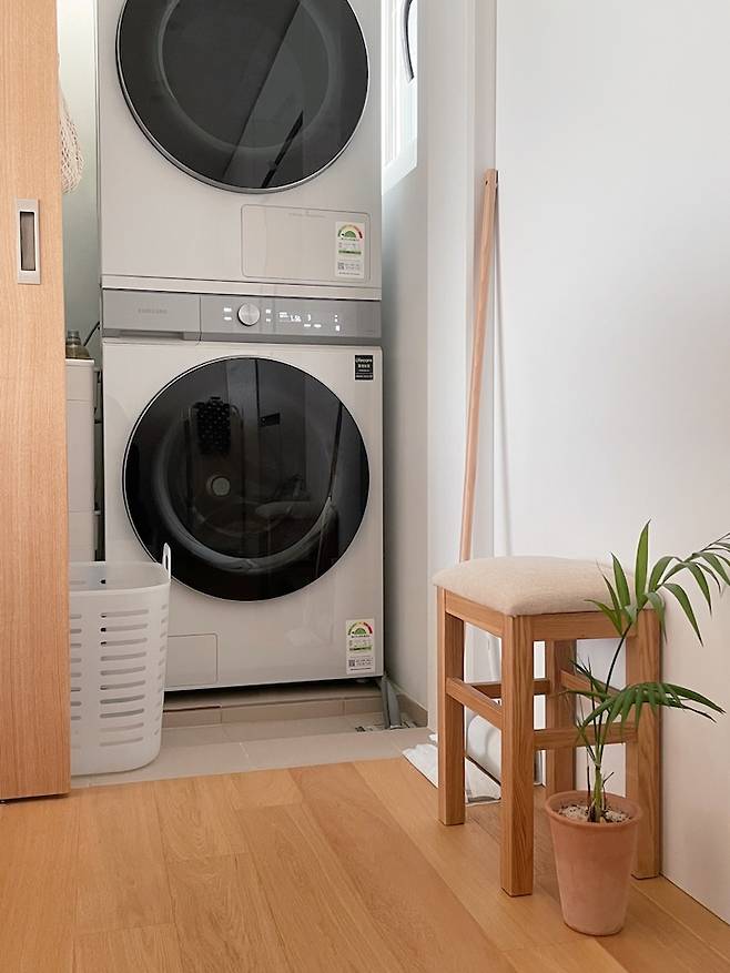 큰 세탁실이 있었을 때는 이것저것 사서 쟁여놓고는 까먹기 일쑤였는데 이젠 물건을 사고 싶을 때마다 '이건 어디에 두지?'를 먼저 고민하게 돼요. 물건이 차지할 자리가 없으니 더 이상 욕심내지 않게 되고요. 작은 세탁실이 처음엔 골칫거리였는데 지금은 가장 애정 하는 공간이 되었답니다.
