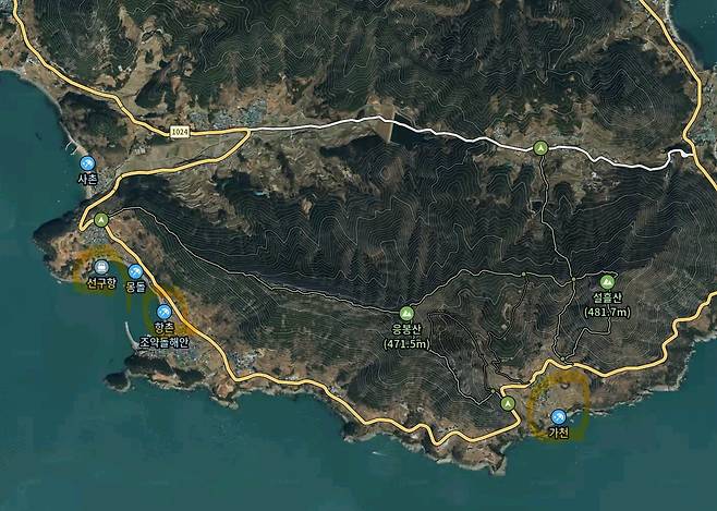 남면 쪽 향촌과 가천 중간의