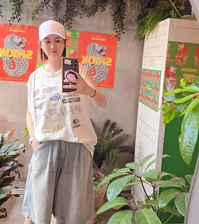 여기에 더해진 화이트 볼캡은 전체 코디에 포인트를 주면서도 실용성을 챙긴 선택이었어요. 얼굴을 작아 보이게 하는 효과는 물론, 민낯에도 스타일리시하게 연출해주는 마법 같은 아이템이죠.