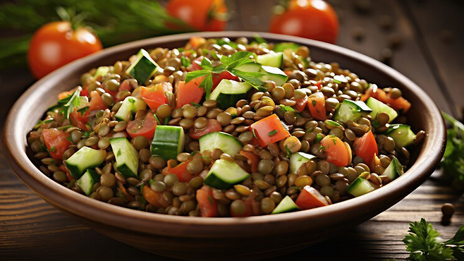 작고 납작한 렌틸콩은 100g당 단백질 25g을 함유한 대표적인 식물성 단백질 공급원이다. 철분, 엽산, 식이섬유가 풍부해 근육뿐 아니라 심혈관 건강과 소화 기능 개선에도 도움이 된다.