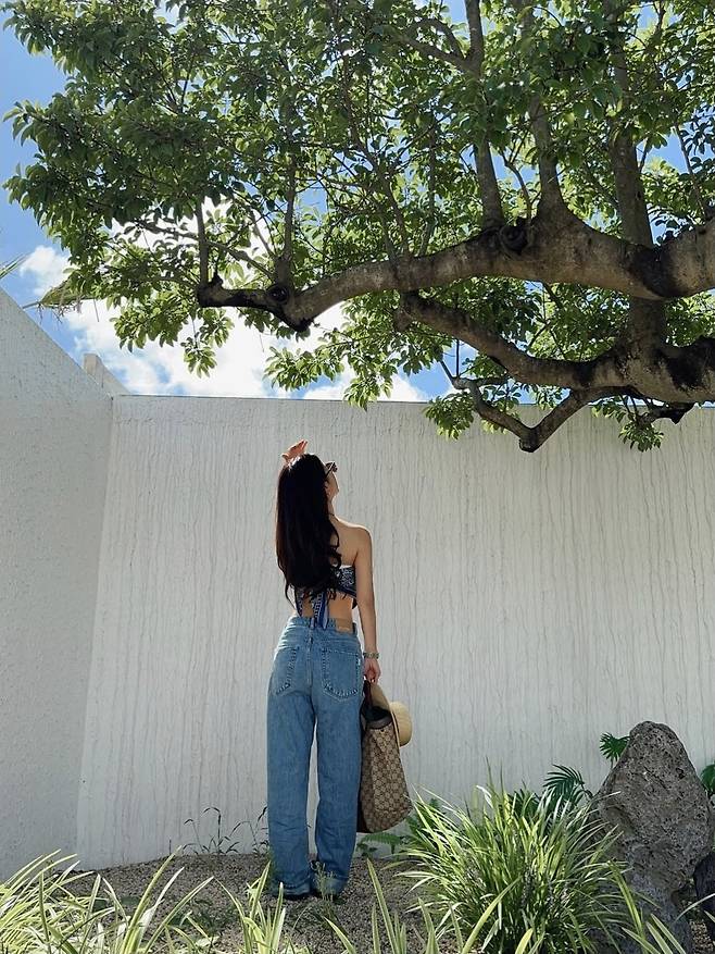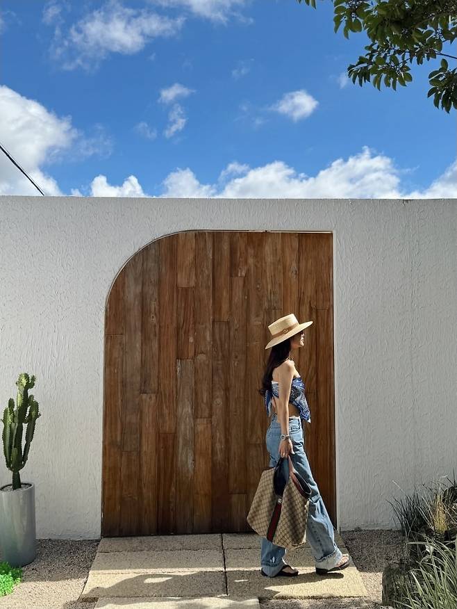 특히 스트로 햇과 선글라스로 강렬한 햇살 속에서도 세련된 무드를 유지했으며, 구찌 빅백으로 실용성과 럭셔리 포인트를 동시에 잡았습니다.
