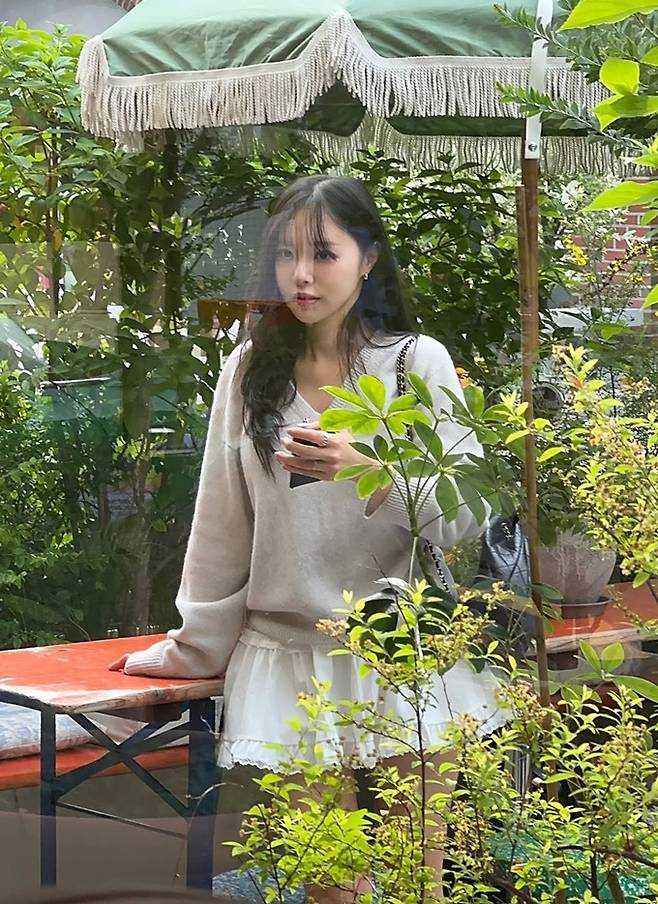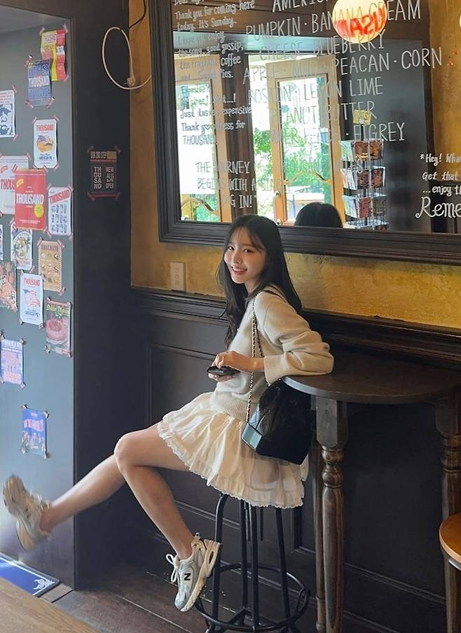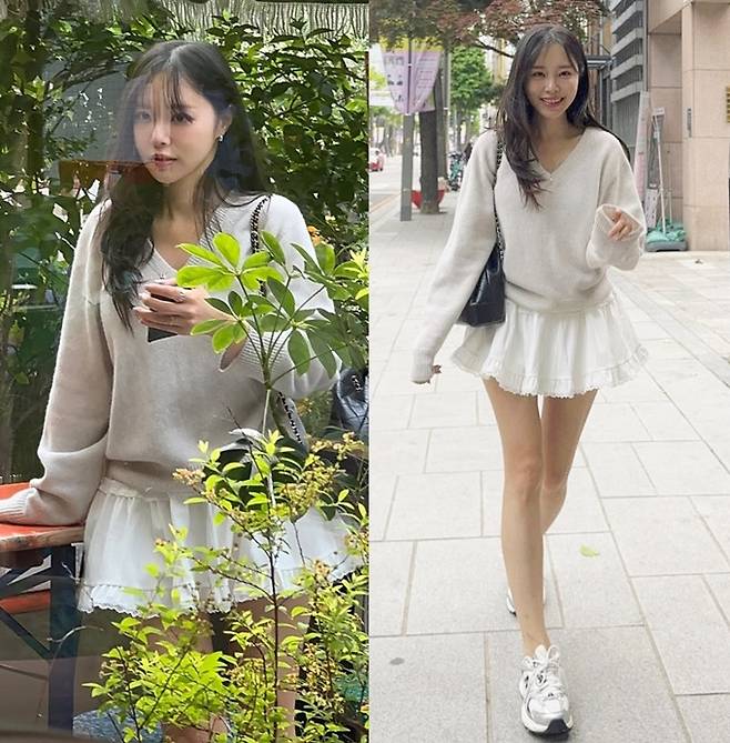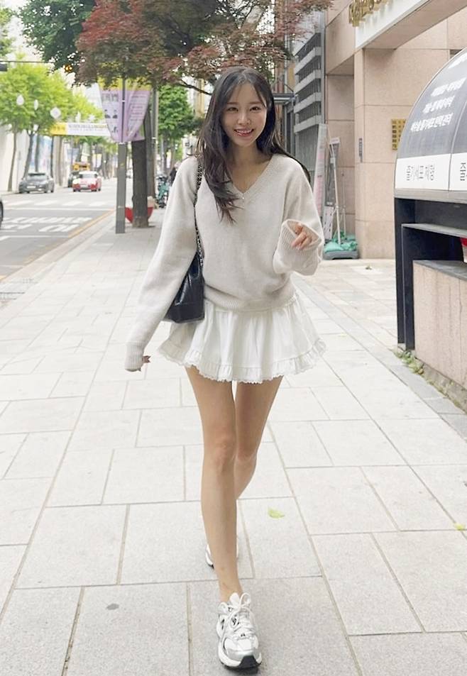 공개한 사진에서 이솔이는 늘씬한 각선미가 드러난 초미니 화이트 프릴 스커트에 브이넥 니트 스웨터를 착용한 데일리룩으로 하이틴 소녀 같은 걸리시한 미모를 드러냈다.