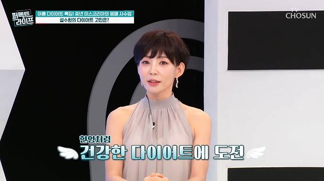 설수현은 "화면에는 잘 티가 나지 않지만, 저는 건강한 다이어트를 계속하고 있다"고 밝혔습니다. 이어 "화면에는 날씬해 보이는데 19살 때 69.5kg까지 체중이 늘었고, 임신 후 75kg까지 증가했다가 54kg까지 감량했다"고 말했습니다.