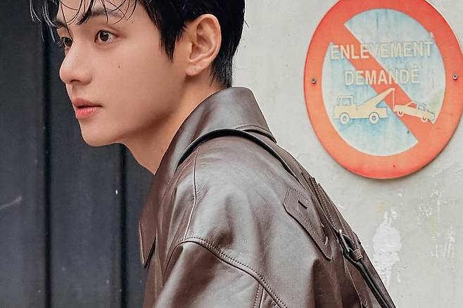 공개된 사진은 명품 브랜드 광고 촬영을 위해 준비된 것으로 보이며, 뷔는 갈색 가죽 재킷과 가방, 체크무늬 바지를 매치해 한층 성숙하고 따뜻한 가을 감성을 완성했다.