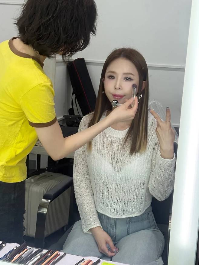 최근 신지는 자신의 SNS를 통해 무대를 준비하는 대기실 현장을 공개했다.