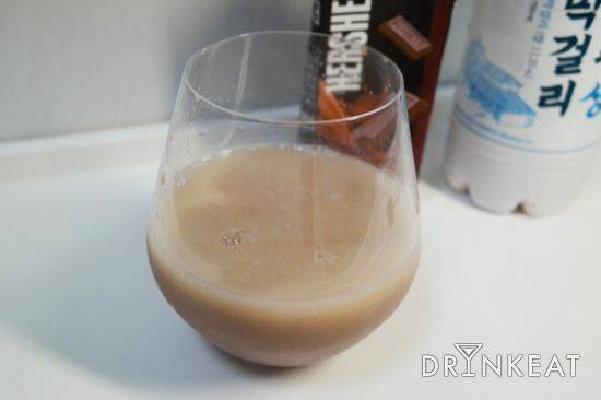 장수막걸리로 유명한 서울장수주식회사의 ‘막카오’를 기억하는가? 쌀로 빚은 술에 초콜릿의 원료인 카카오닙스를 더해 만들었던 그 제품! 막걸리에 코코아 가루 내지는 초콜릿 아이스크림을 섞어 먹는 듯한 맛 때문에 호불호가 갈렸었는데, 초코 우유를 섞은 이 막걸리도 그와 비슷한 맛이 난다. 막걸리와 초콜릿 맛이 완전히 따로 노는 듯한 느낌. 초콜릿이 들어간 술인 머드쉐이크와 비교해 보자면, 그보다 조금 더 달고, 텁텁한 맛은 덜하다.