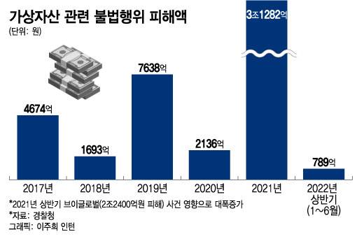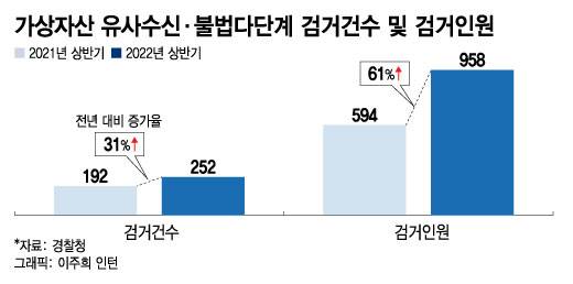 경찰 관계자는 "시·도경찰청 전문수사부서를 중심으로 집중수사를 진행했고 총책부터 단순 가담자까지 철저히 수사한 결과"라며 "적극적인 단속과 더불어 가상자산 가격이 내림세를 이어가면서 가상자산 관련 각종 불법행위 피해액은 지난해 상반기 대비 97% 감소했다"고 했다.