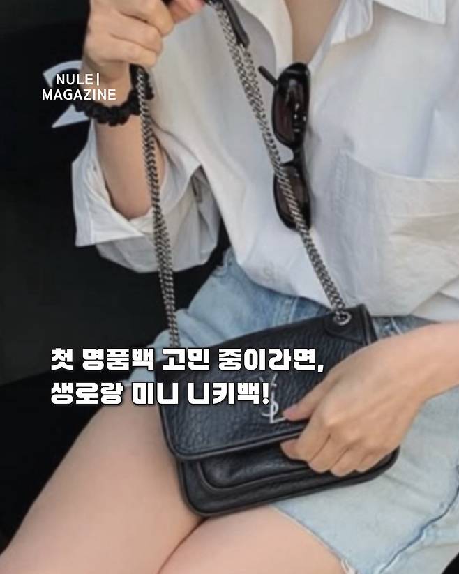 바로 생로랑 미니 니키백(Saint Laurent Mini Niki Bag)!고급스러움은 기본이고, 꾸안꾸 스타일에 찰떡인 이 백은
