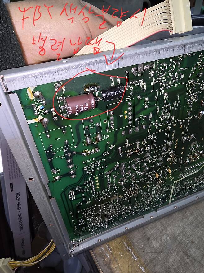 FBT 에 가까운 가장 큰 콘덴서 전해질 소실 되는 현상에