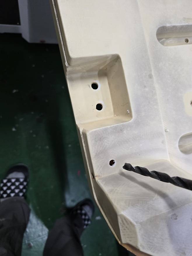 뒤집어서 인젝션 할 구멍 뚫어 줍니다