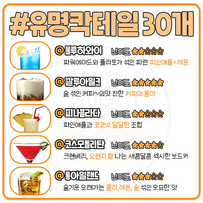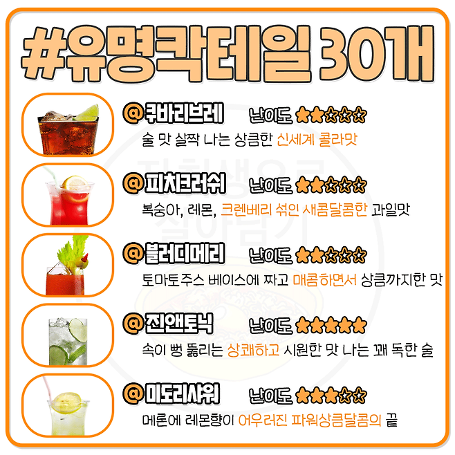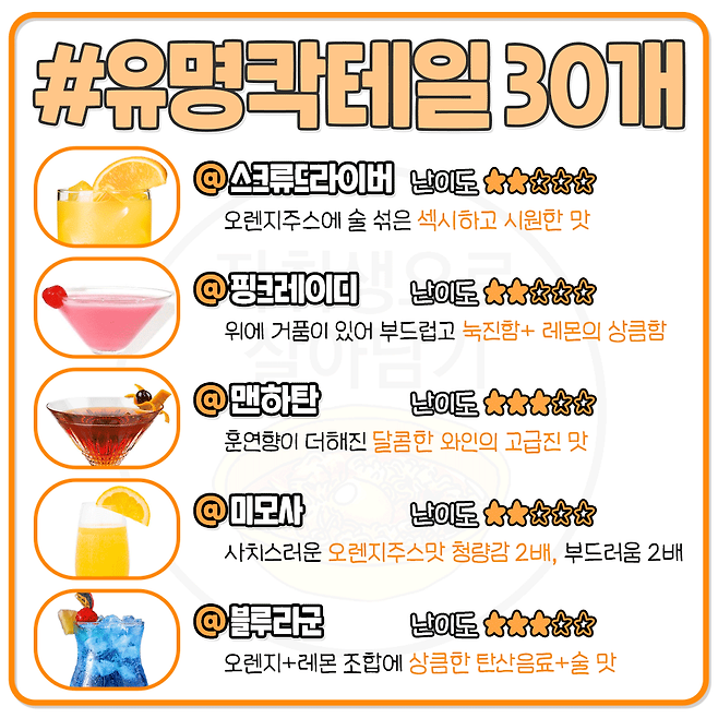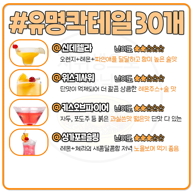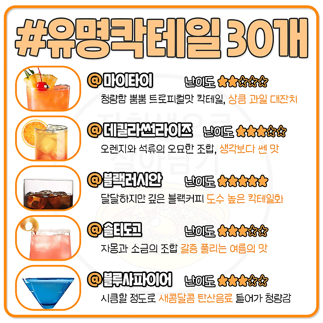 칵린이를 위한 대표 칵테일 30가지 맛 한줄 정리
